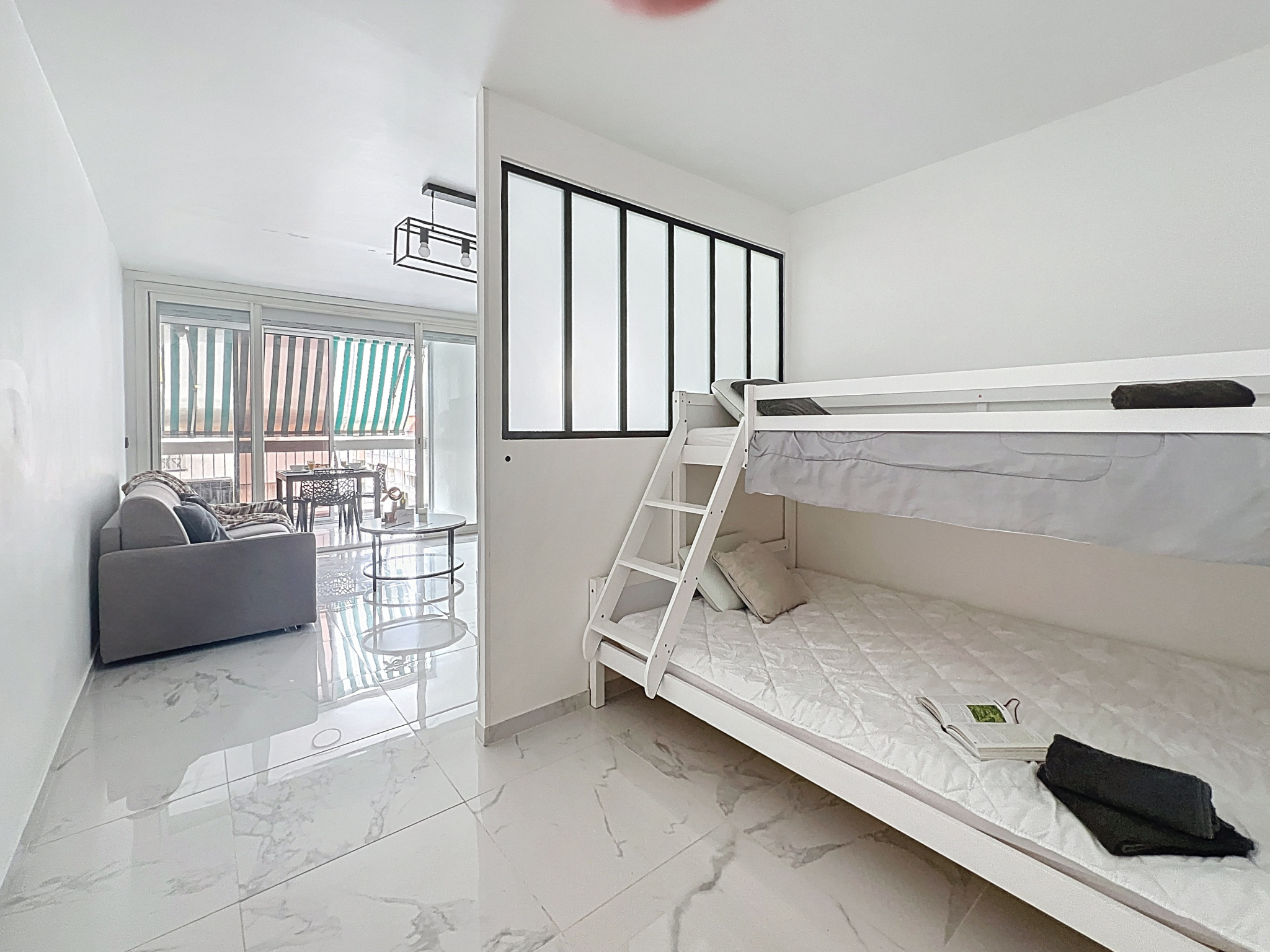 JUAN LES PINS centre secteur Saint Honorat , locatiion saisonnière libre JUILLET, idéal pour une petite famille, beau studio dans résidence sécurisée, au 4° étage, rénové en 2024, logement pour 4 couchages dont coin nuit indépendant pour les enfants (lits superposés) lnge de maison fourni . Emplacement privilégié, vous serez au pied de tous les commerces, gare, bus, et des plages de Juan les pins. Oubliez la voiture et profitez de la mer. Ce logement bénéficie d'un beau balcon fermé en loggia où vous pourrez vous installer pour un petit déjeuner ou un apéritif entre amis.