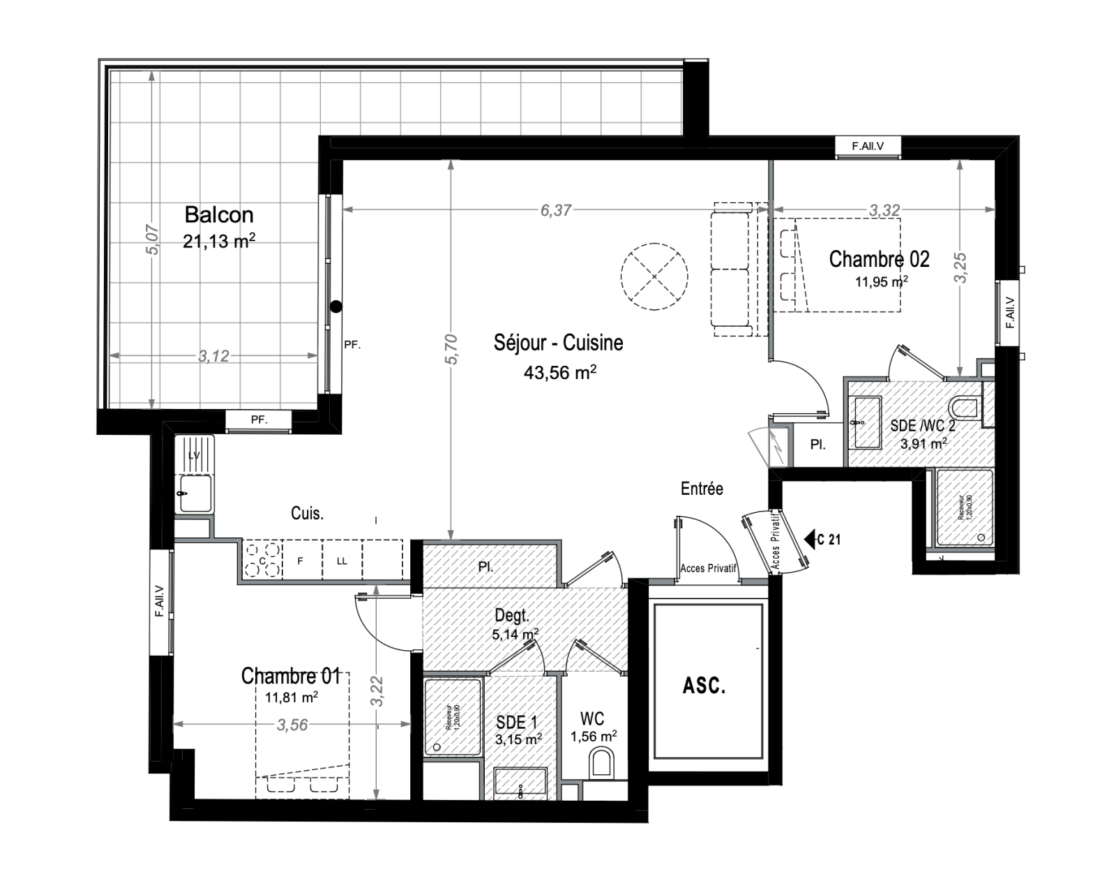 Le séjour spacieux et lumineux, agrémenté d’une cuisine ouverte contemporaine, conjugue design et raffinement. L’espace nuit se compose de deux chambres en suite, chacune disposant de sa propre salle d’eau, offrant un niveau de confort digne des plus belles prestige properties on the French Riviera. Deux WC complètent cet agencement parfaitement pensé pour une clientèle internationale exigeante.