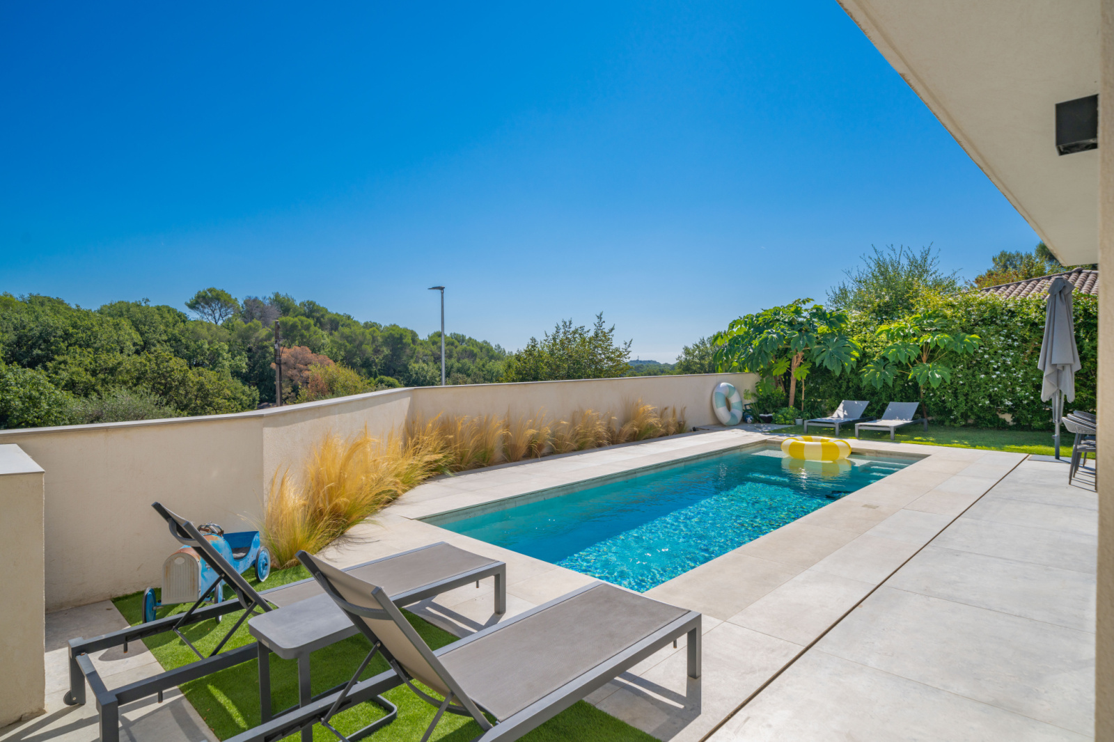 Idéalement situé à seulement quelques minutes à pied du village de Valbonne, cette maison individuelle contemporaine, construite en 2018, offre confort, modernité et prestations de qualité.