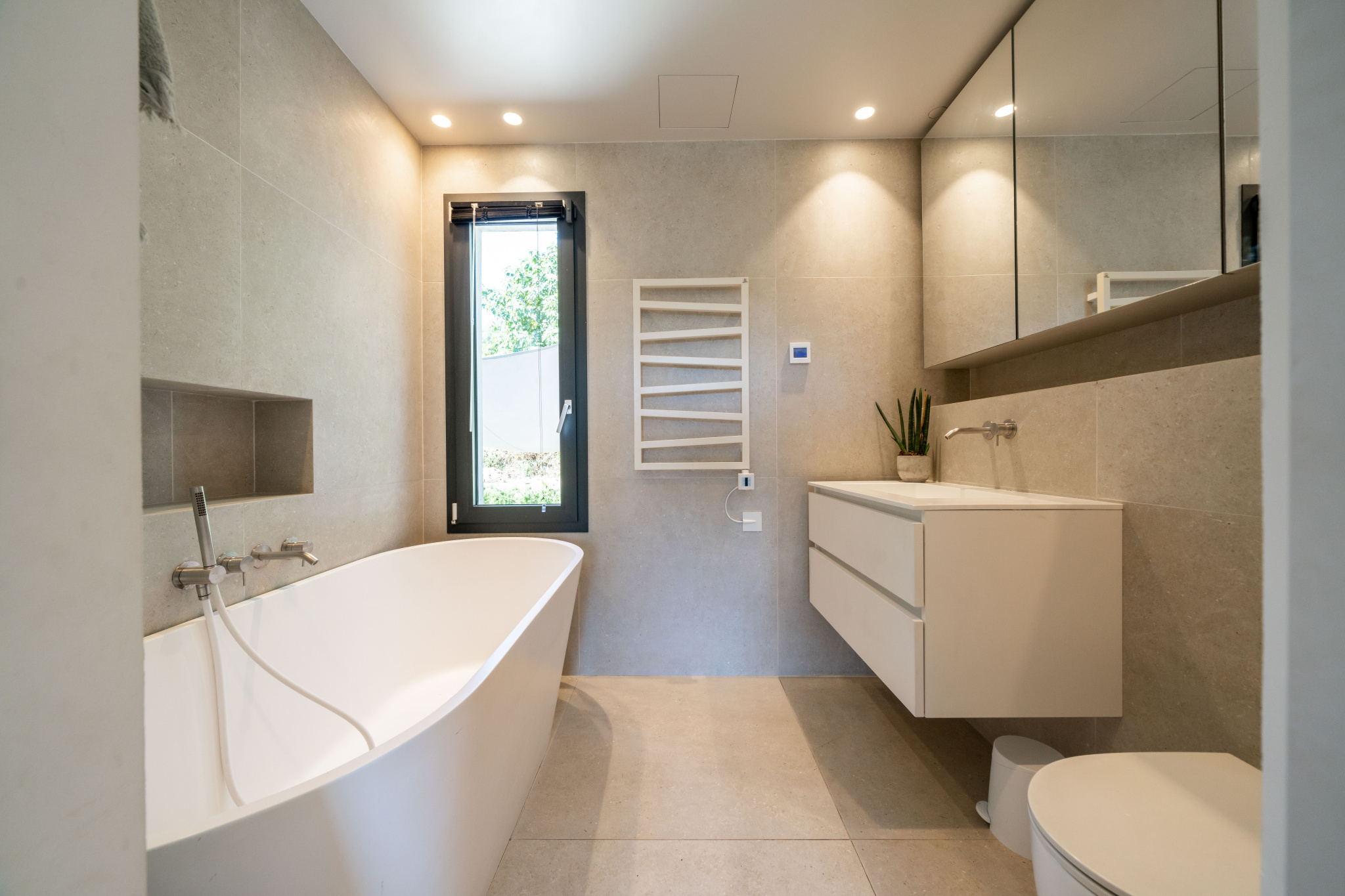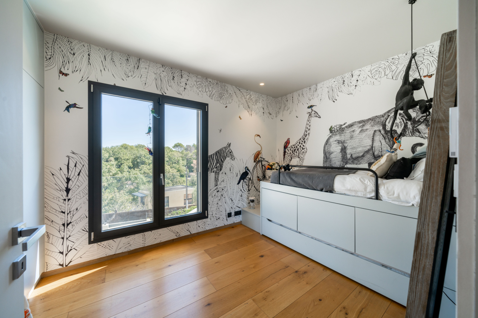 - Étage supérieur : deux chambres avec rangements, deux salles d’eau ainsi qu’un bureau.