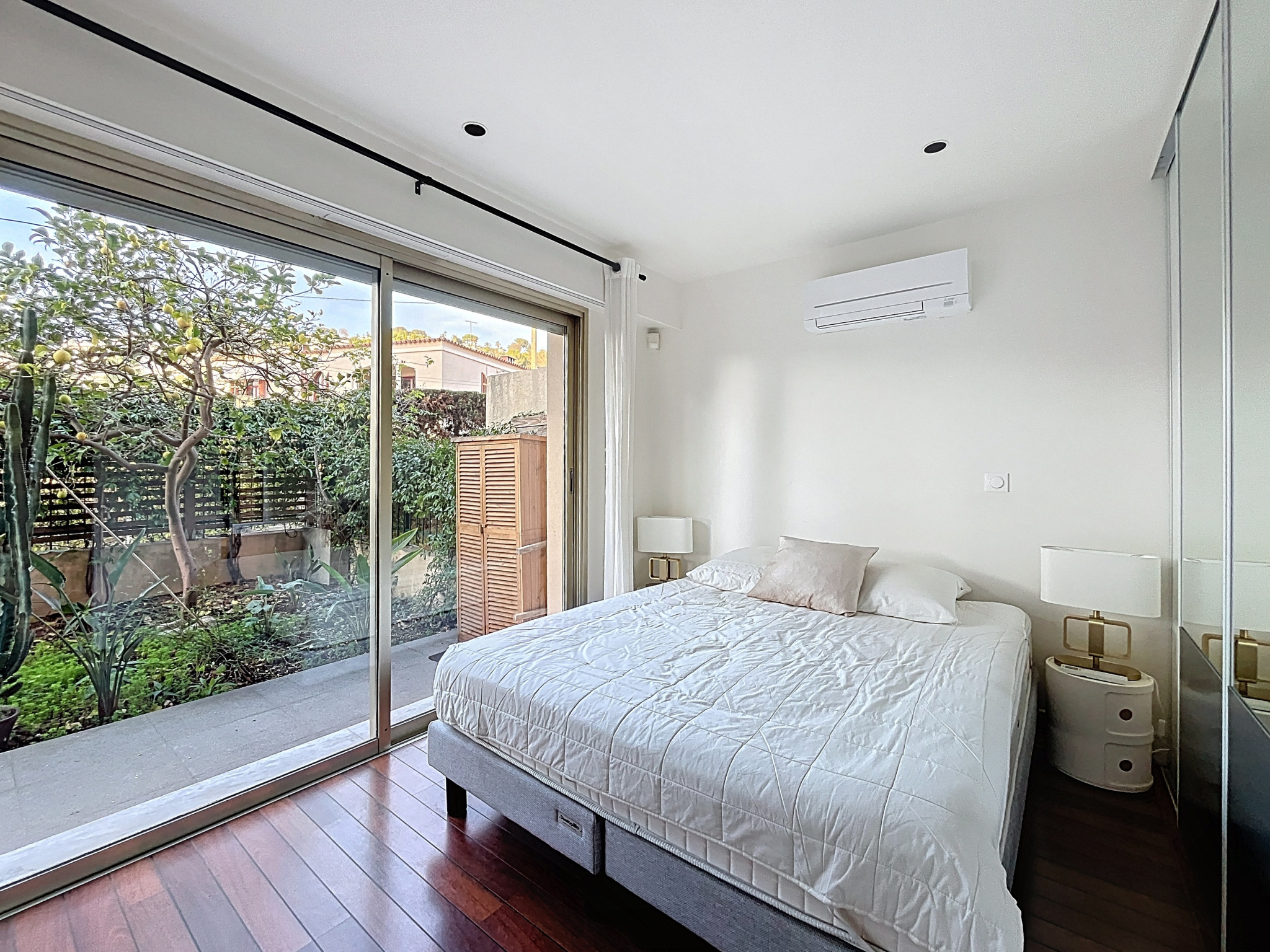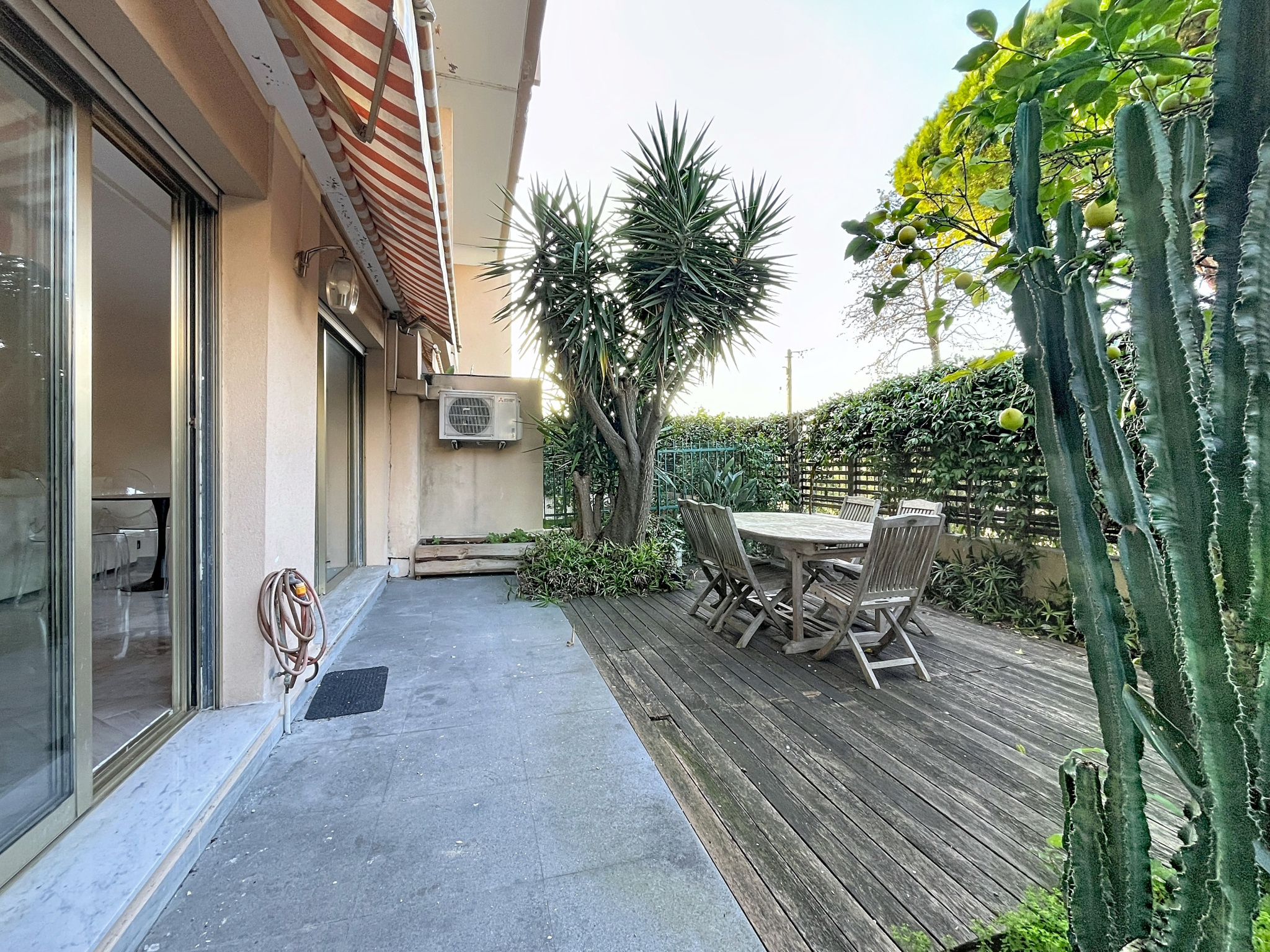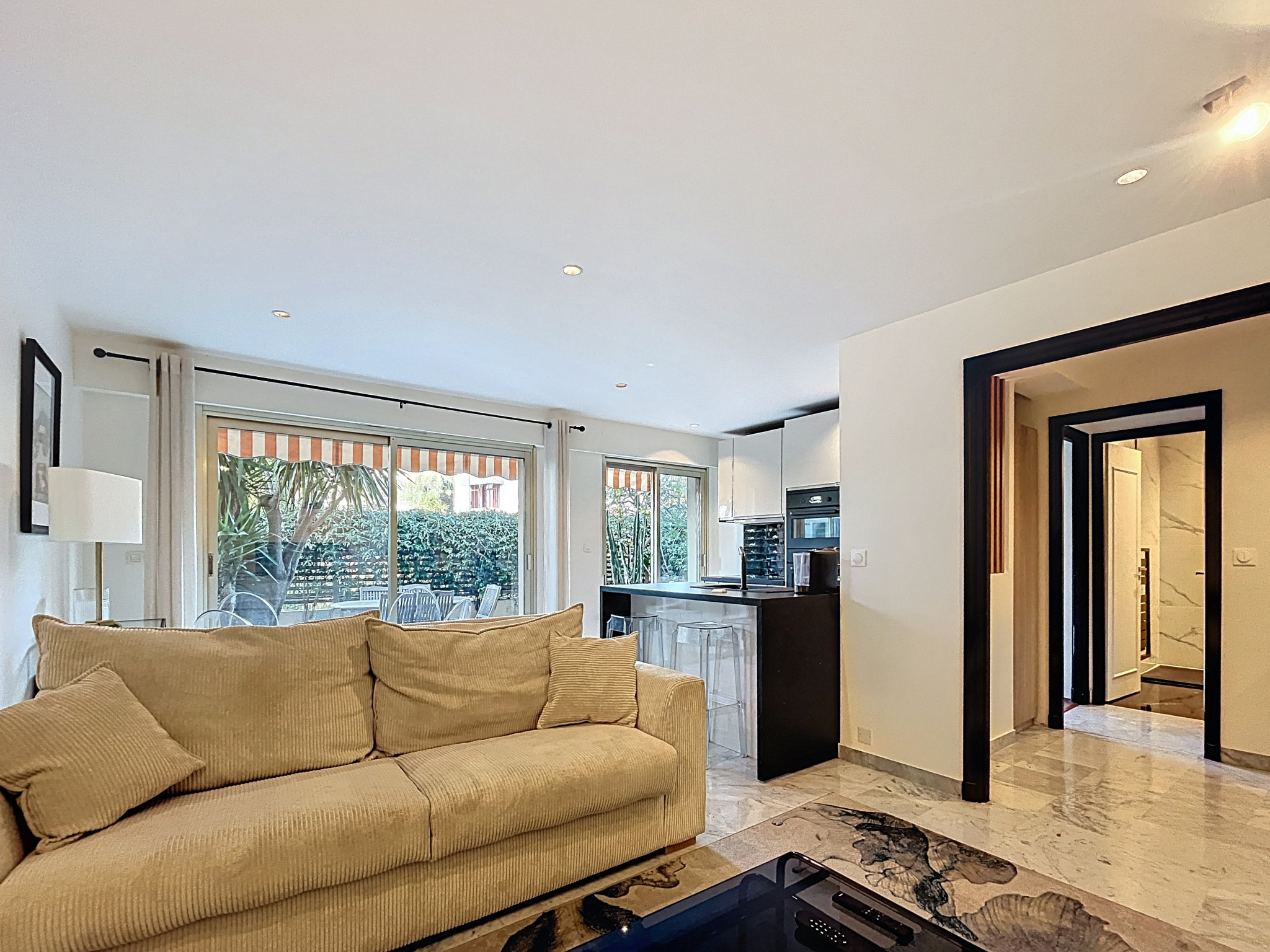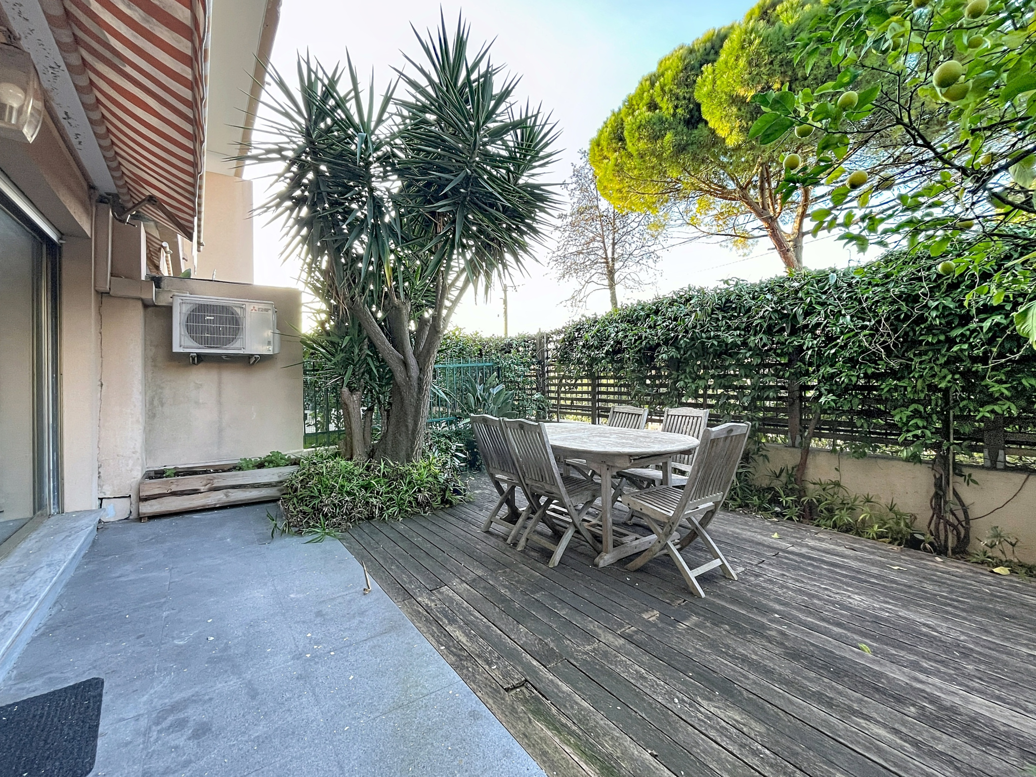 L'Agence Planet Collection a le plaisir de vous présenter ce superbe appartement 2 pièces de 46m2, bénéficiant d'un jardin privatif de 43 m2, véritable havre de paix. Idéalement situé dans l'un des secteurs les plus recherché du Cannet, au sein d'une résidence sécurisée avec gardien, parfaitement au calme et dotée d'une piscine, d'un court de tennis, ce bien offre un cadre de vie privilégié. L'appartement s'ouvre sur une entrée élégante menant à un séjour spacieux et lumineux, prolongé par le jardin, ainsi qu'à une cuisine aménagée et fonctionnelle, idélae pour partager des moments conviviaux. L'espace nuit propose une chambre confortable avec dressing, d'une salle d'eau moderne, et d'un espace buanderie. Les prestations sont de qualité : climatisation, double vitrage, volets roulants électriques, nombreux rangements et WC indépendants. Une cave ainsi qu'un stationnement extérieur complètent ce bien rare sur le marché, alliant confort, calme et qualité de vie. Soumis au régime de copropriété - Charges annuelles 2140 € - Honoraires agence compris à la charges du vendeur.