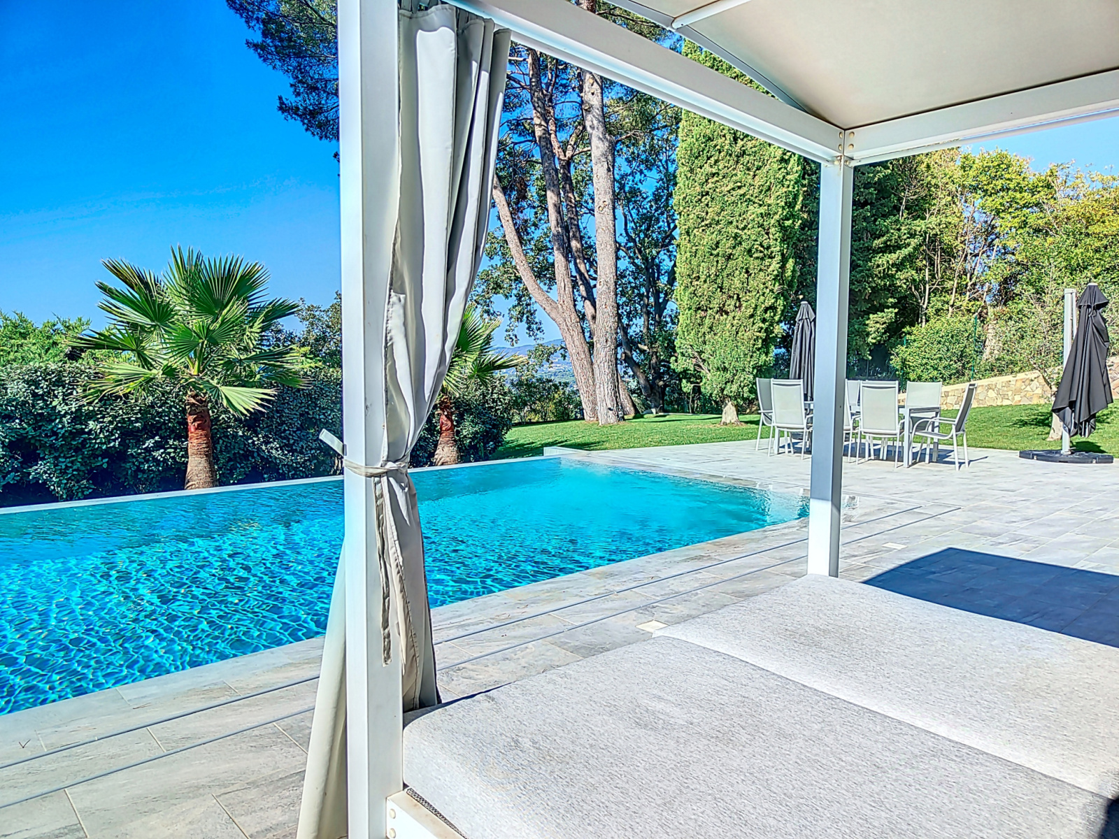 MOUGINS, Dans un secteur privilégié de Mougins à l'abri des regards, venez découvrir cette sublime villa d'environ 370m² avec une vue mer de la Pointe Croisette à l'Esterel. Celle-ci est composée d'une belle pièce à vivre avec cuisine semi-ouverte, 6 chambres en suite dont 2 de plain pied. Cave à vin, salle de cinéma, hammam, sauna, cuisine d'été et grande piscine à débordement (15x4.5) . Vous serez séduit par les prestations intérieures, climatisation à air pulsé, baies vitrées à galandage. Plusieurs stationnements disponibles. Réalisée par un architecte de renom, Vous apprécierez l'harmonie de la bâtisse en pierre de taille, les détails et les prestations haut de gamme. Pour plus d'informations, n'hésitez pas à contacter PLANET COLLECTION.