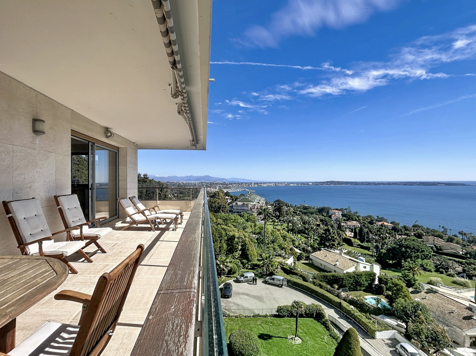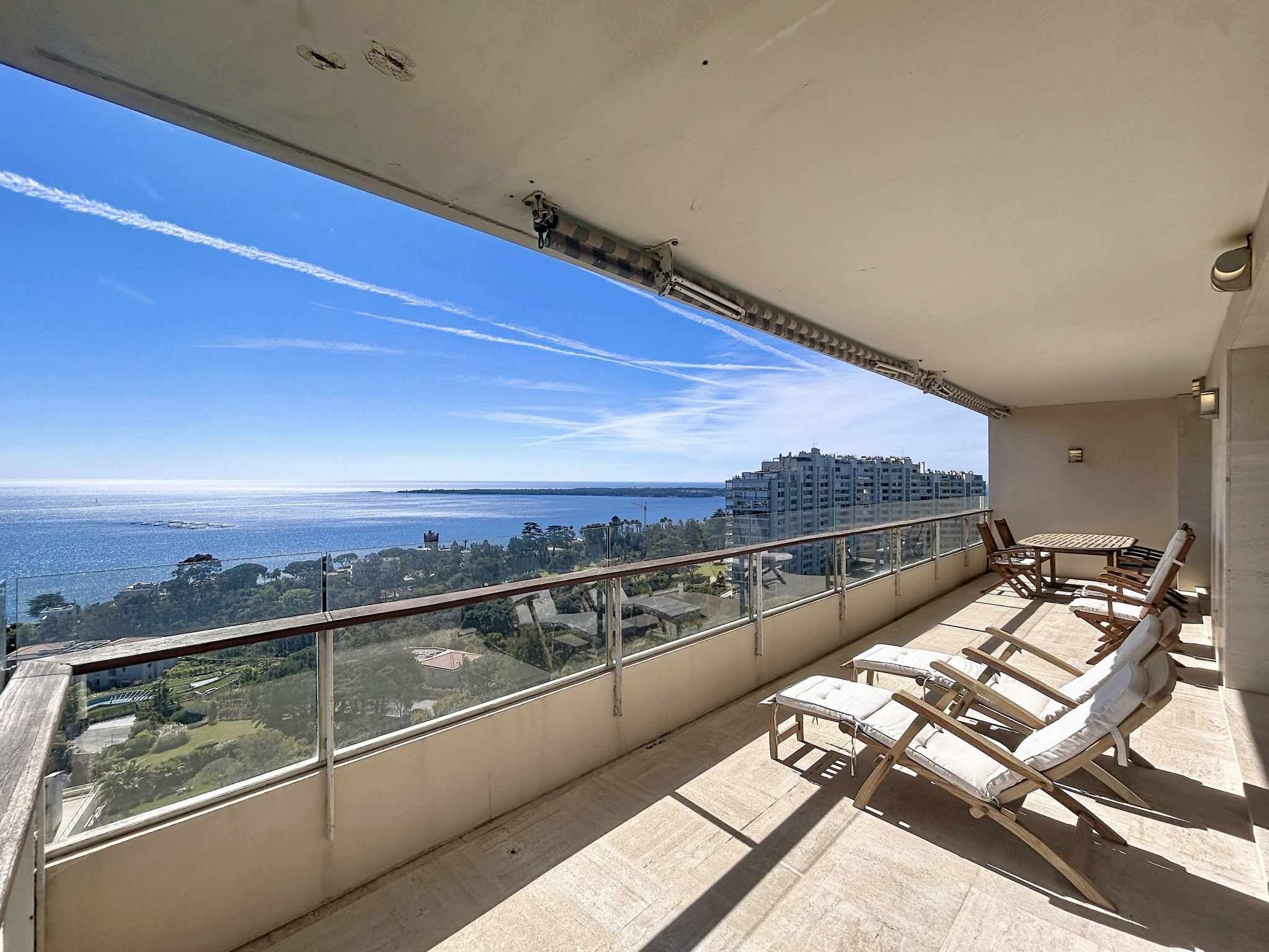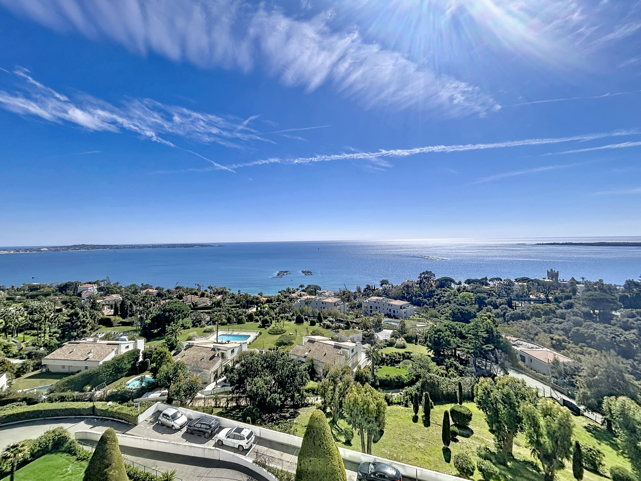 Dans l’un des secteurs les plus prisés de Cannes, au cœur de la très recherchée Californie, au sein d’une résidence de grand standing sécurisée avec gardien, superbe parc paysager de 11 hectares, piscine, tennis, hammam, salle de sport et conciergerie. Cet appartement d’angle d’exception, entièrement rénové avec des prestations haut de gamme, développe plus de 120 m² et bénéficie d’une luminosité remarquable grâce à son exposition plein sud-est. La pièce de vie, véritable cœur de l’appartement, offre un volume rare de 70 m² avec une cuisine ouverte, moderne et parfaitement équipée, le tout prolongé par une agréable terrasse d’angle d’environ 14 m². La vue est tout simplement spectaculaire, avec un panorama à couper le souffle sur la mer, le Cap d’Antibes et la baie de Nice. L’espace nuit se compose de deux chambres : une première avec salle d’eau, ainsi qu’une élégante suite parentale avec salle de douche, WC et une vue mer exceptionnelle. Prestations raffinées : parquet massif, matériaux nobles, équipements contemporains, volets roulants électriques, climatisation réversible gainable. Sans aucun vis-à-vis et au calme absolu, ce bien rare conjugue élégance, confort et emplacement d’exception. En complément, ce bien est vendu avec un garage de près de 20 m², une cave ainsi qu’une chambre de service d’environ 13 m², apportant un confort de vie rare et recherché. Soumis au régime de copropriété. Charges annuelles: 8400 euros. Les honoraures sont à la charges du vendeur.