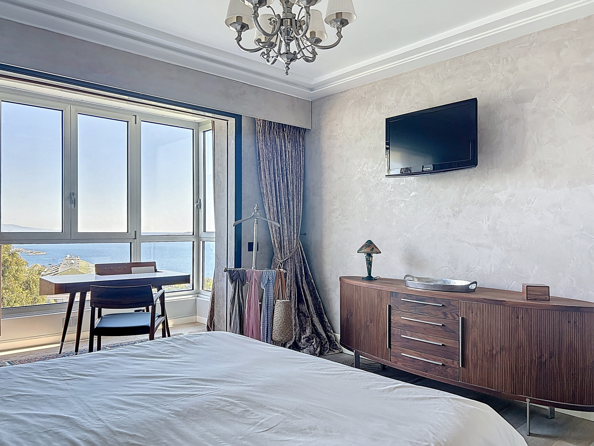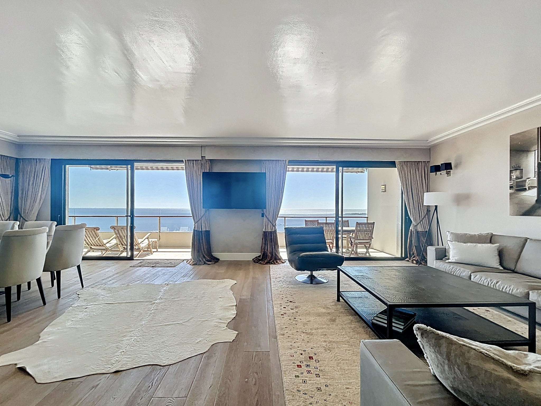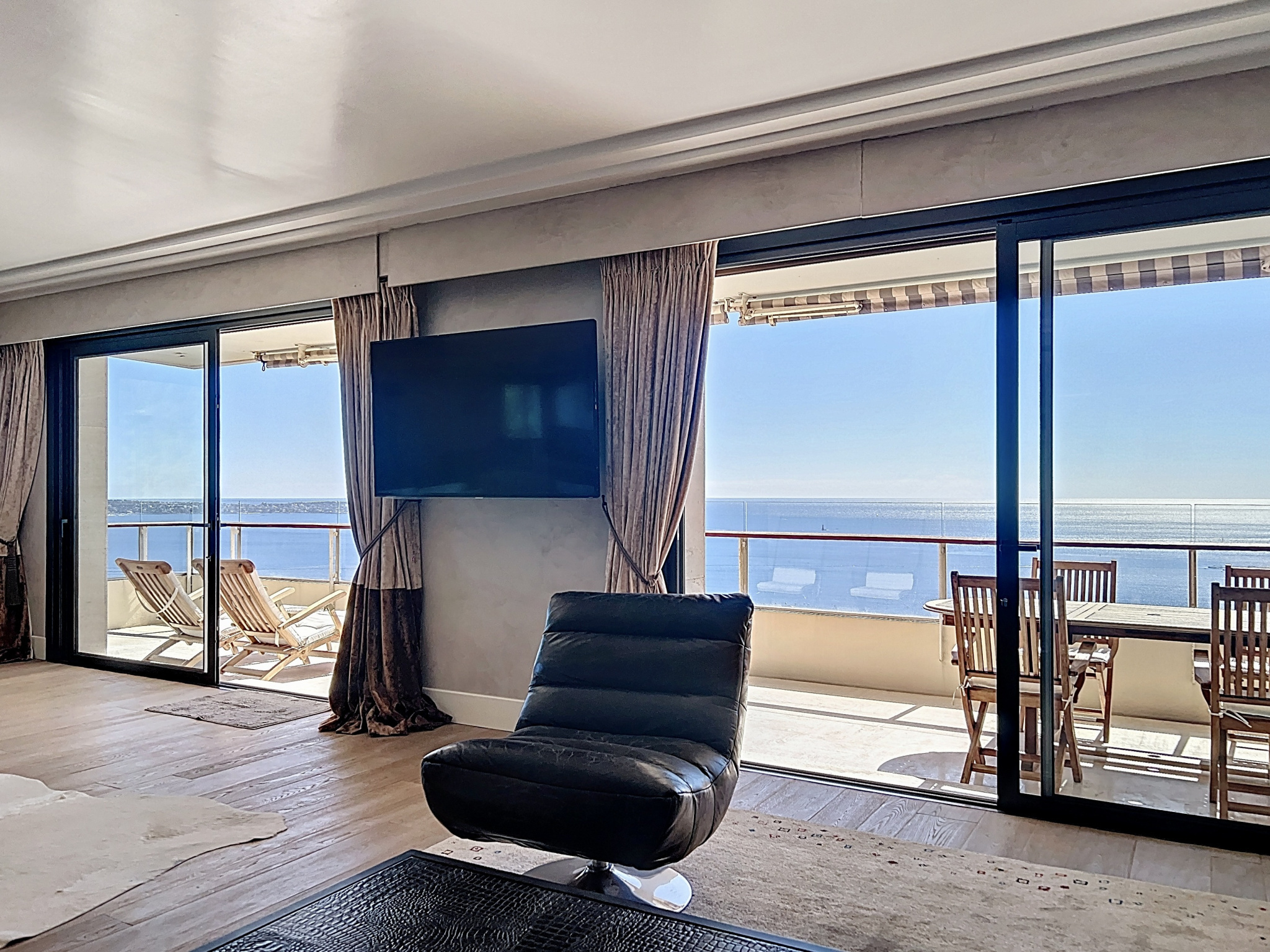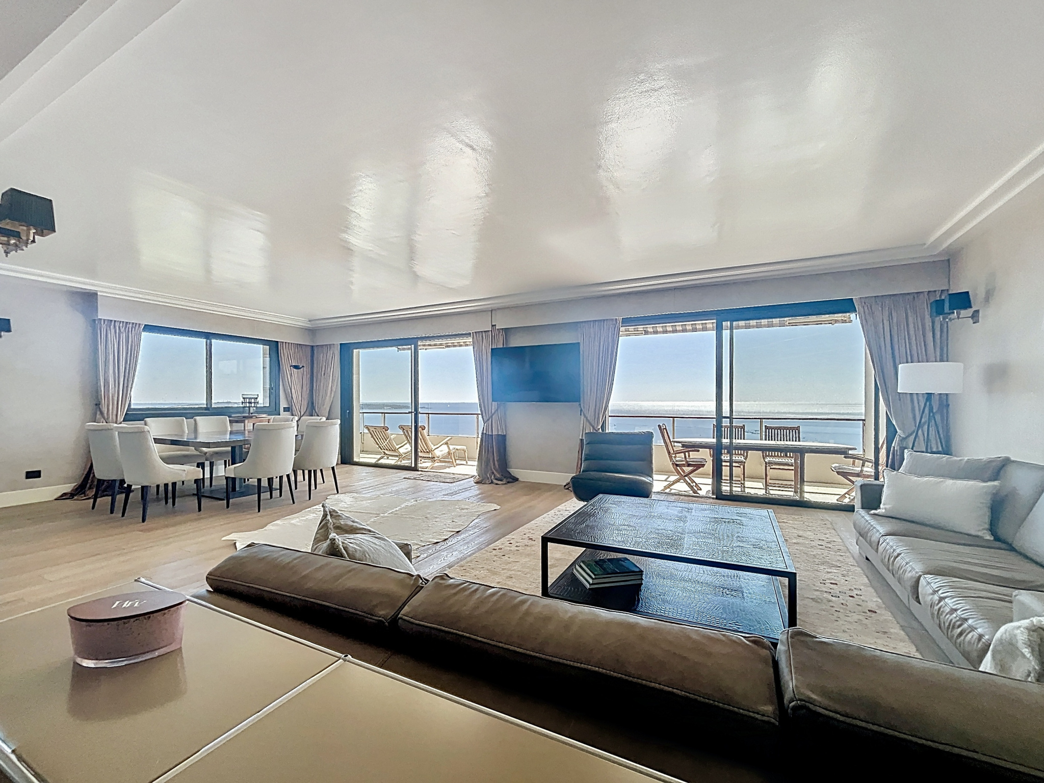 Dans l’un des secteurs les plus prisés de Cannes, au cœur de la très recherchée Californie, au sein d’une résidence de grand standing sécurisée avec gardien, superbe parc paysager de 11 hectares, piscine, tennis, hammam, salle de sport et conciergerie. Cet appartement d’angle d’exception, entièrement rénové avec des prestations haut de gamme, développe plus de 120 m² et bénéficie d’une luminosité remarquable grâce à son exposition plein sud-est. La pièce de vie, véritable cœur de l’appartement, offre un volume rare de 70 m² avec une cuisine ouverte, moderne et parfaitement équipée, le tout prolongé par une agréable terrasse d’angle d’environ 14 m². La vue est tout simplement spectaculaire, avec un panorama à couper le souffle sur la mer, le Cap d’Antibes et la baie de Nice. L’espace nuit se compose de deux chambres : une première avec salle d’eau, ainsi qu’une élégante suite parentale avec salle de douche, WC et une vue mer exceptionnelle. Prestations raffinées : parquet massif, matériaux nobles, équipements contemporains, volets roulants électriques, climatisation réversible gainable. Sans aucun vis-à-vis et au calme absolu, ce bien rare conjugue élégance, confort et emplacement d’exception. En complément, ce bien est vendu avec un garage de près de 20 m², une cave ainsi qu’une chambre de service d’environ 13 m², apportant un confort de vie rare et recherché. Soumis au régime de copropriété. Charges annuelles: 8400 euros. Les honoraures sont à la charges du vendeur.