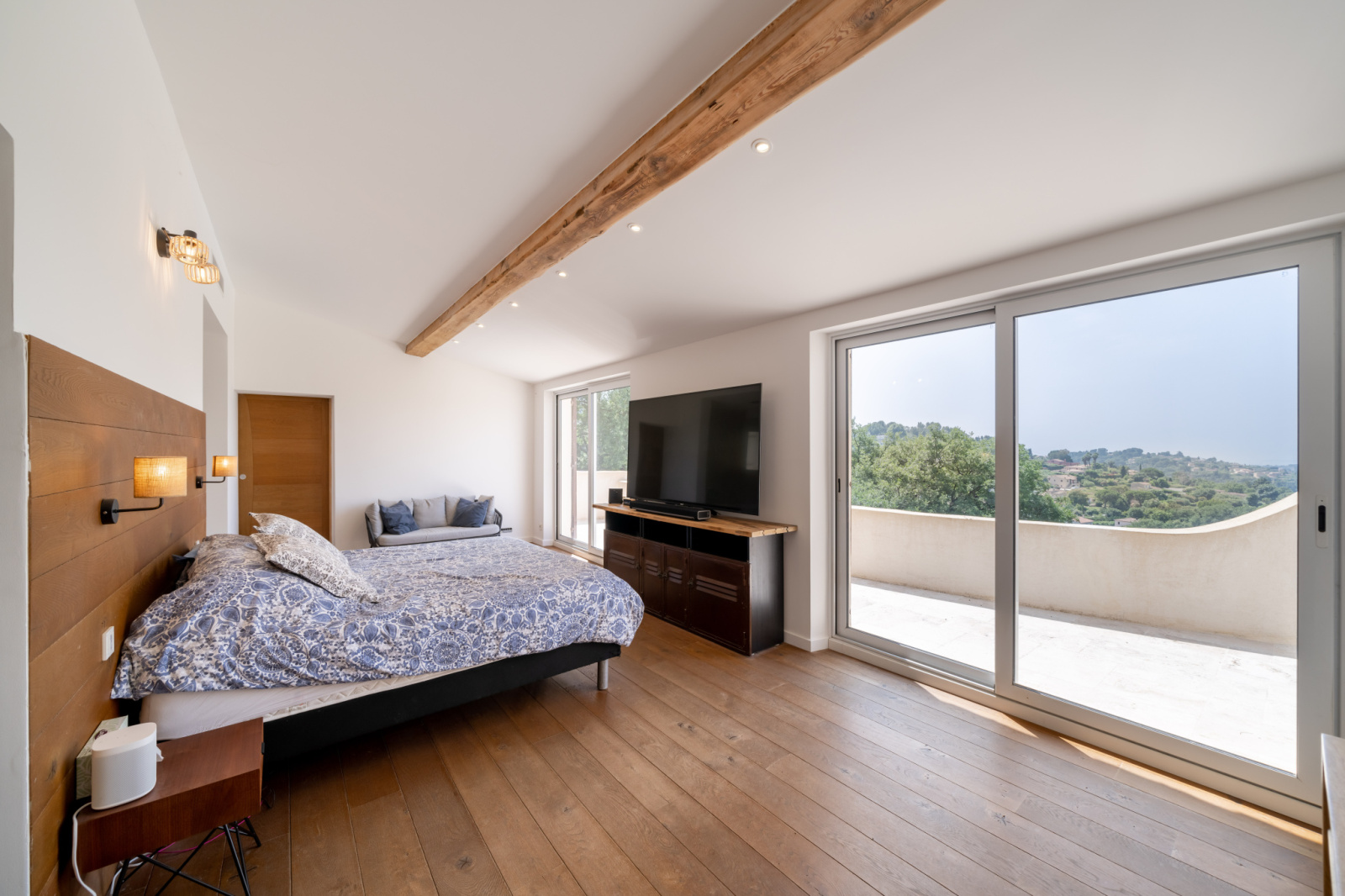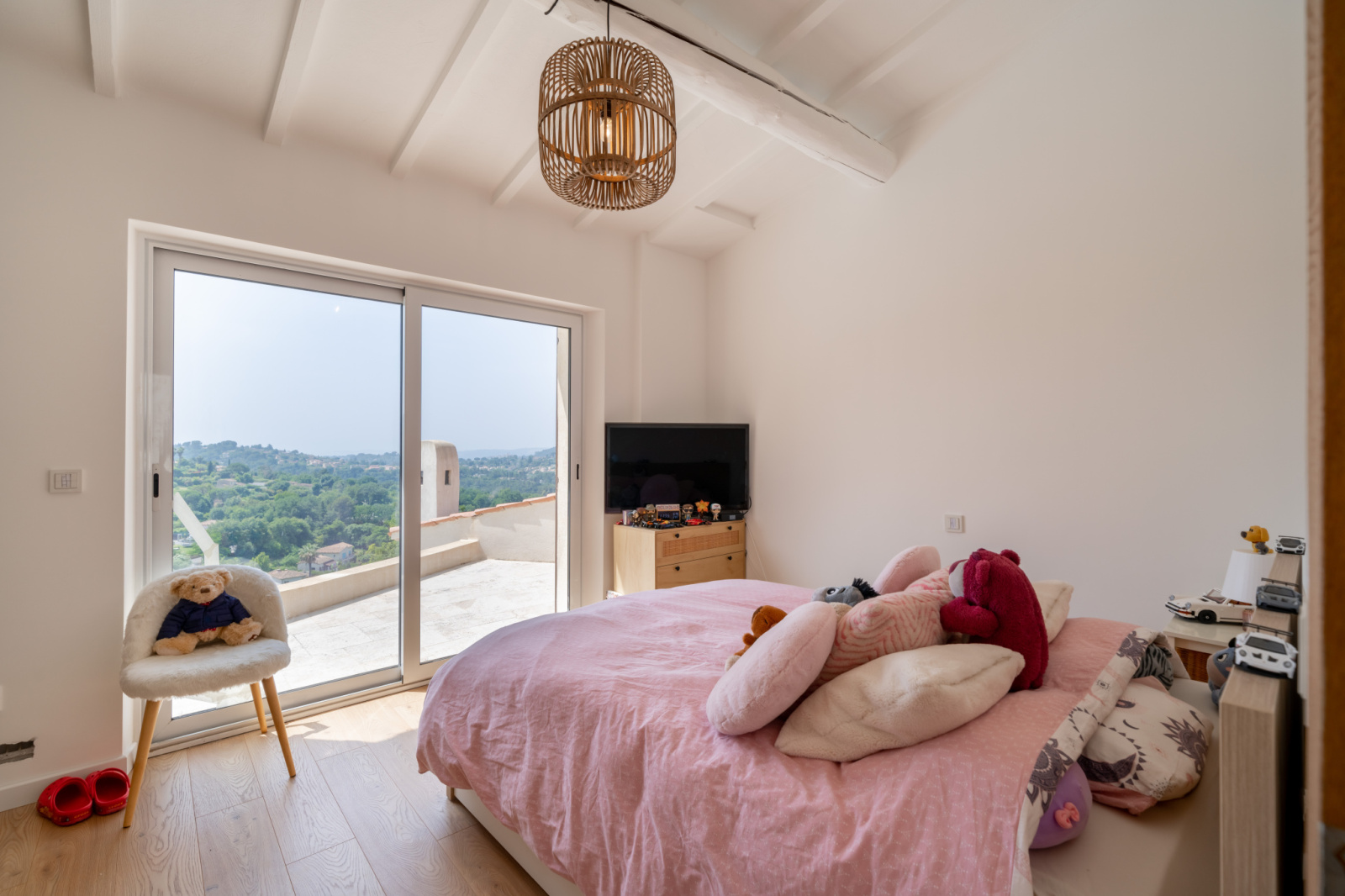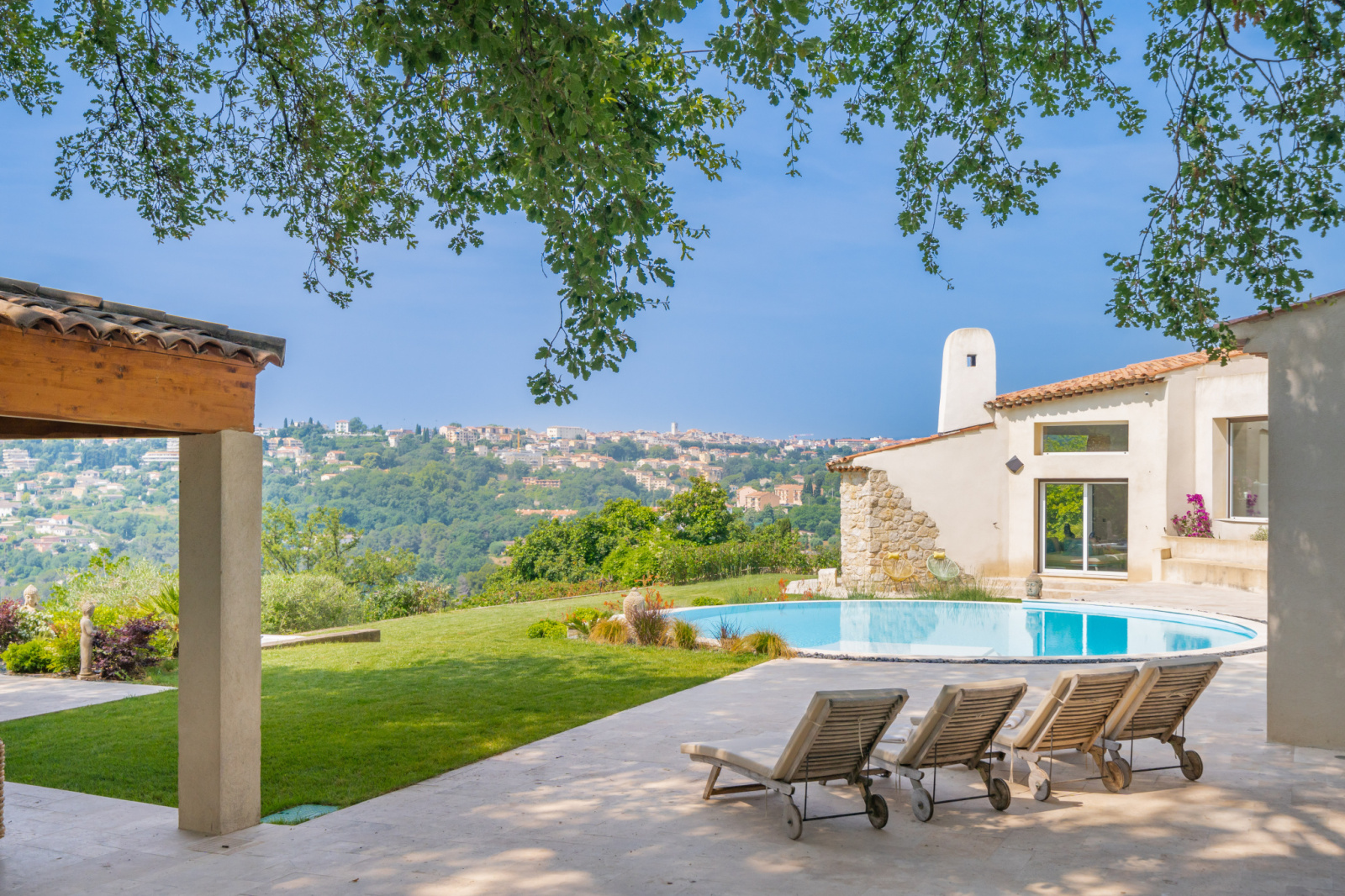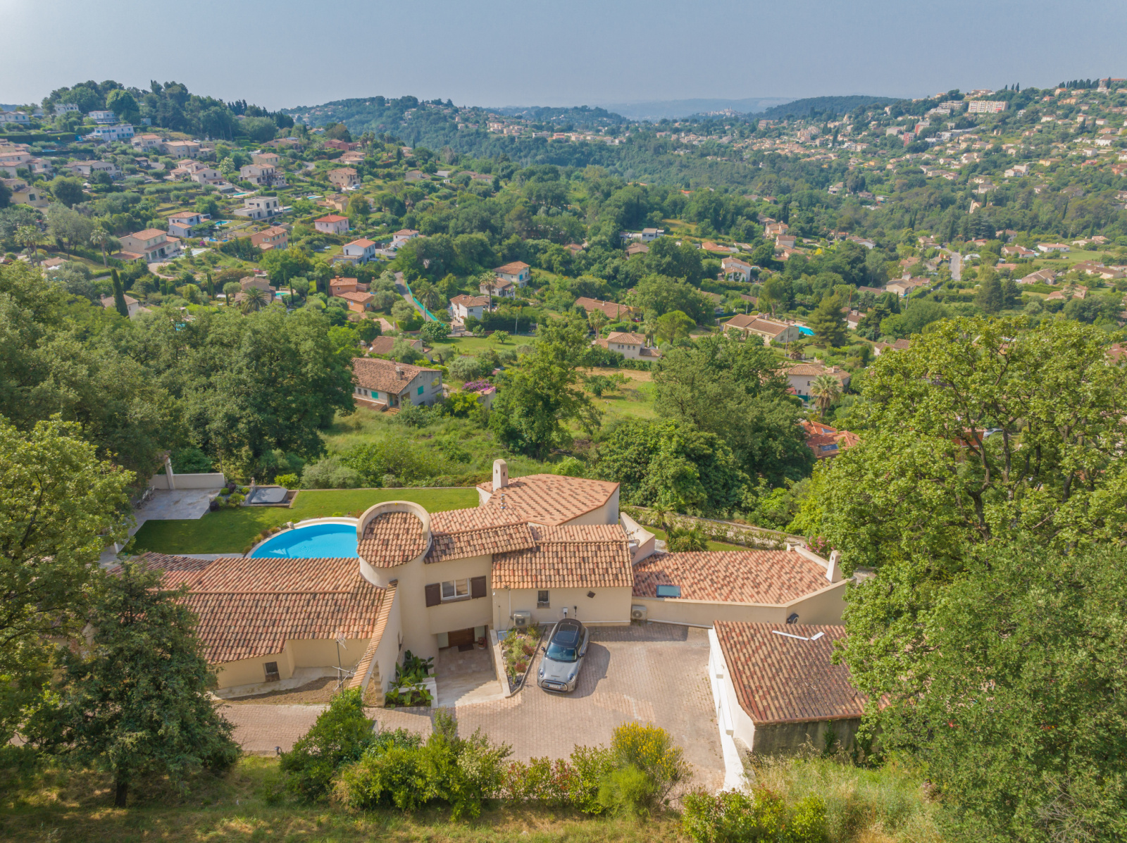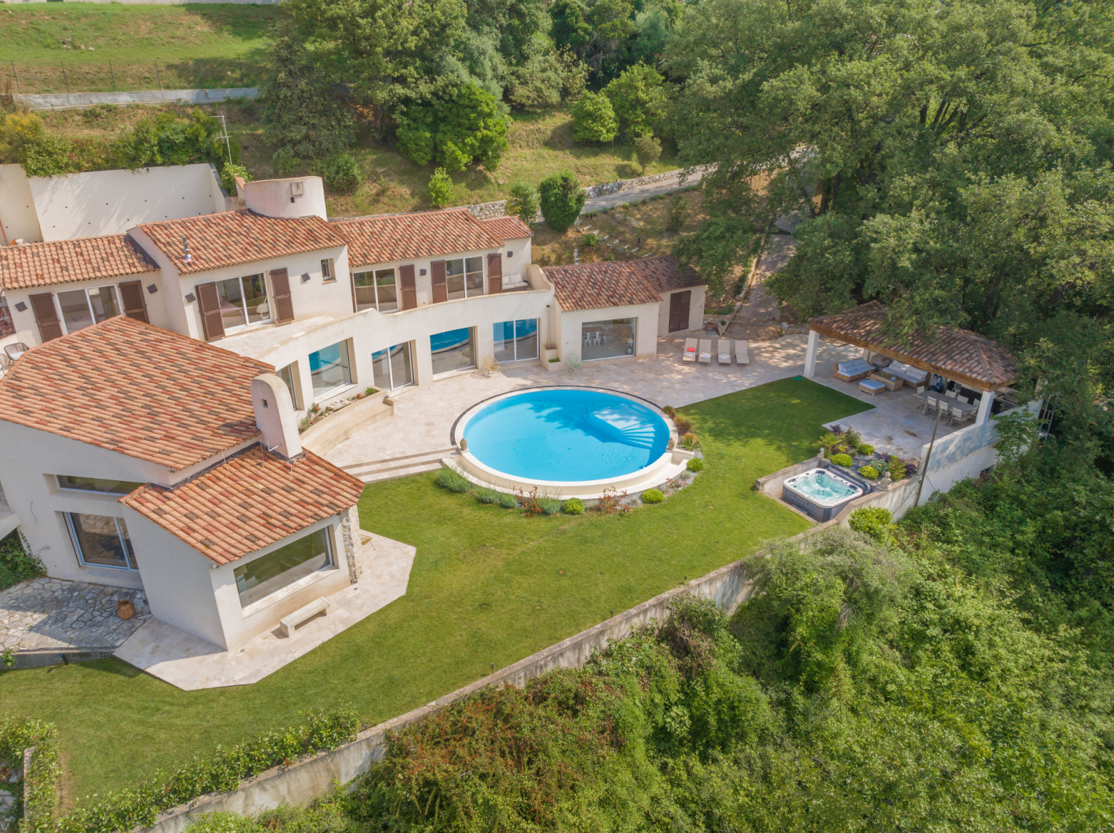 À seulement cinq minutes du village de Vence, cette villa d’exception vous accueille dans un environnement privilégié, au calme absolu, sans aucun vis-à-vis, avec une vue panoramique sublime sur les collines, les villages alentours et la Méditerranée.