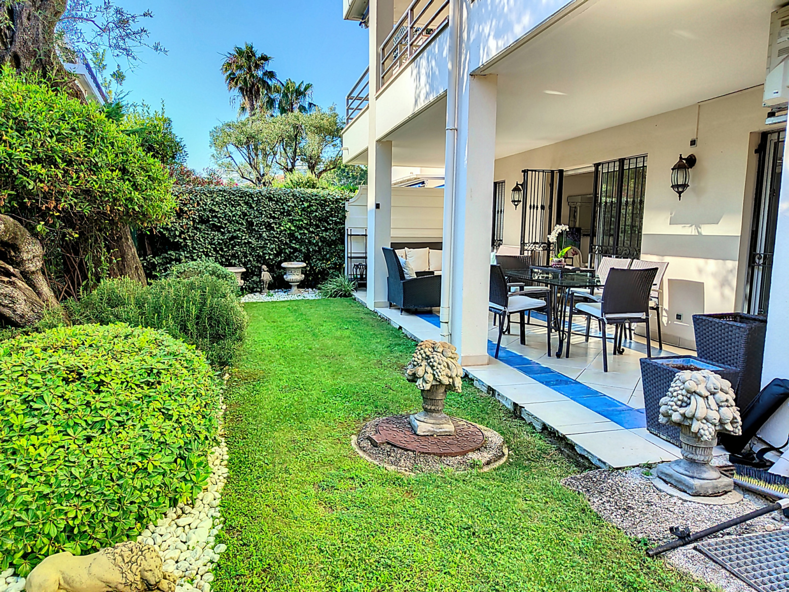 A proximitédes plages, des commerces et des transports, venez découvrir dans une résidence privilégié du Cap d'Antibes, proche de la Pinède et du palais des congrès, un très beau 4 pièces d'angle d'une surface d'environ 95m² en rez de jardin. Résidence de standing construite en 2002 avec piscine chauffée entourée d'un beau parc. Il est idéalement placé pour tout faire à pieds : Palais des congrès et sa salle de sport, la Pinède, les restaurants en bord de mer. Ce bien est composé d'une entrée avec placards, un grand séjour de 48m² avec sa cuisine ouverte américaine équipée récente, le tout ouvrant sur une terrasse couverte de 22m², de 3 chambres dont une en suite avec sa propre salle de bains et douches, une autre salle de bains ainsi que 3 Wc. Le jardin privatif est d'angle exposé Sud Ouest avec olivier, pelouse et arrosage, clos et d'environ 238m². Une cave et un garage fermé en sous-sol complètent ce bien. 9 Parkings visiteurs. Venez découvrir le Cap d'Antibes, endroit idilique de la côte d'Azur, à seulement 1h30 des pistes de sky, quelques minutes en voitures de la splendide croisette de Cannes, proche de Monaco, de l'Italie et de la Corse... Soumis au régime de copropriété. Charges annuelles : 5680€. Honoraires charge vendeur. Pour plus d'informations, n'hésitez pas à contacter PLANET COLLECTION.