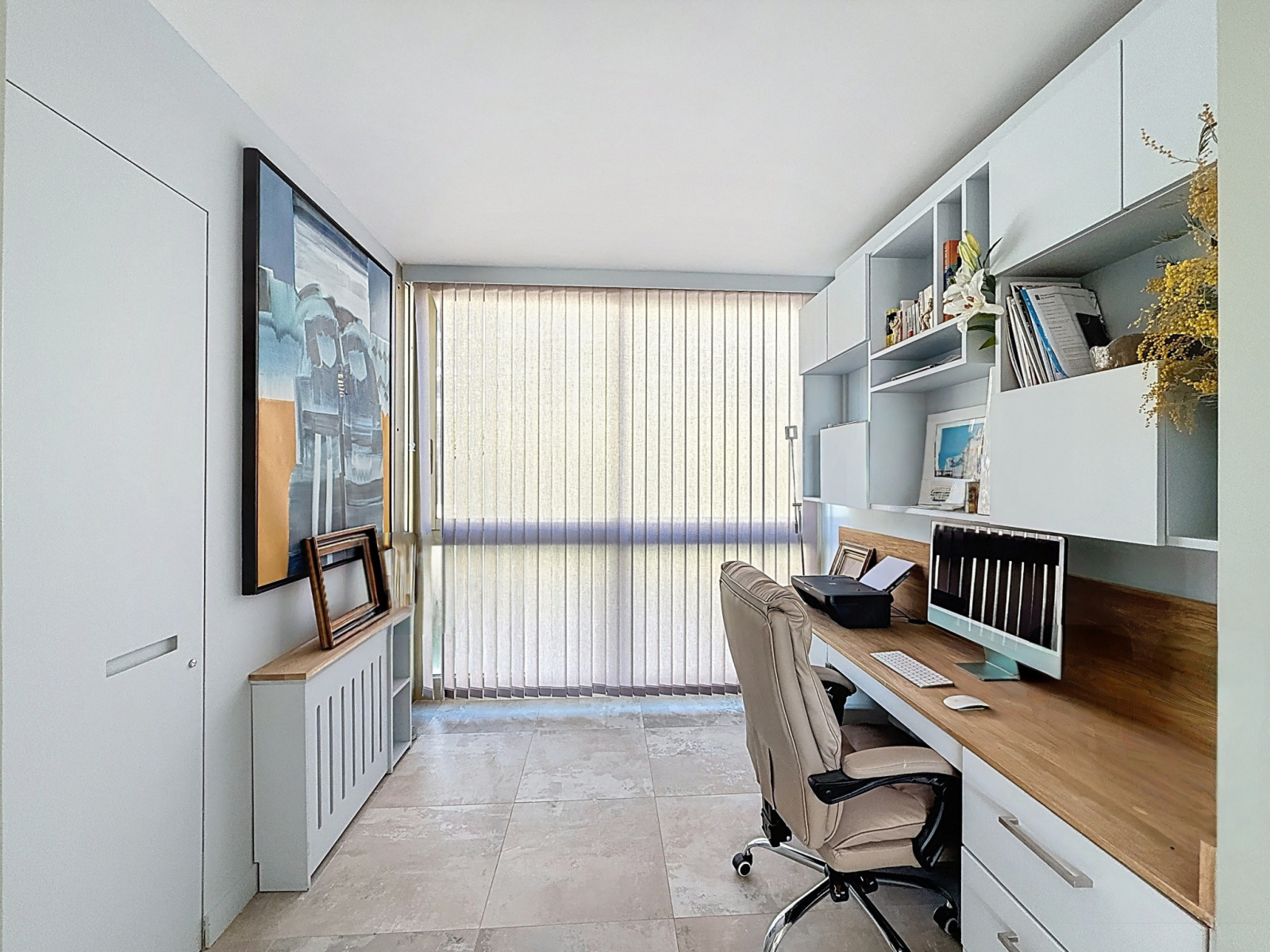 L’espace nuit se compose de deux chambres en suite, chacune disposant de sa salle de douche et WC privatifs, garantissant confort et intimité. Un bureau complète harmonieusement l’ensemble, parfait pour le télétravail ou pouvant faire office de chambre d’appoint. Une buanderie indépendante apporte un confort supplémentaire au quotidien.