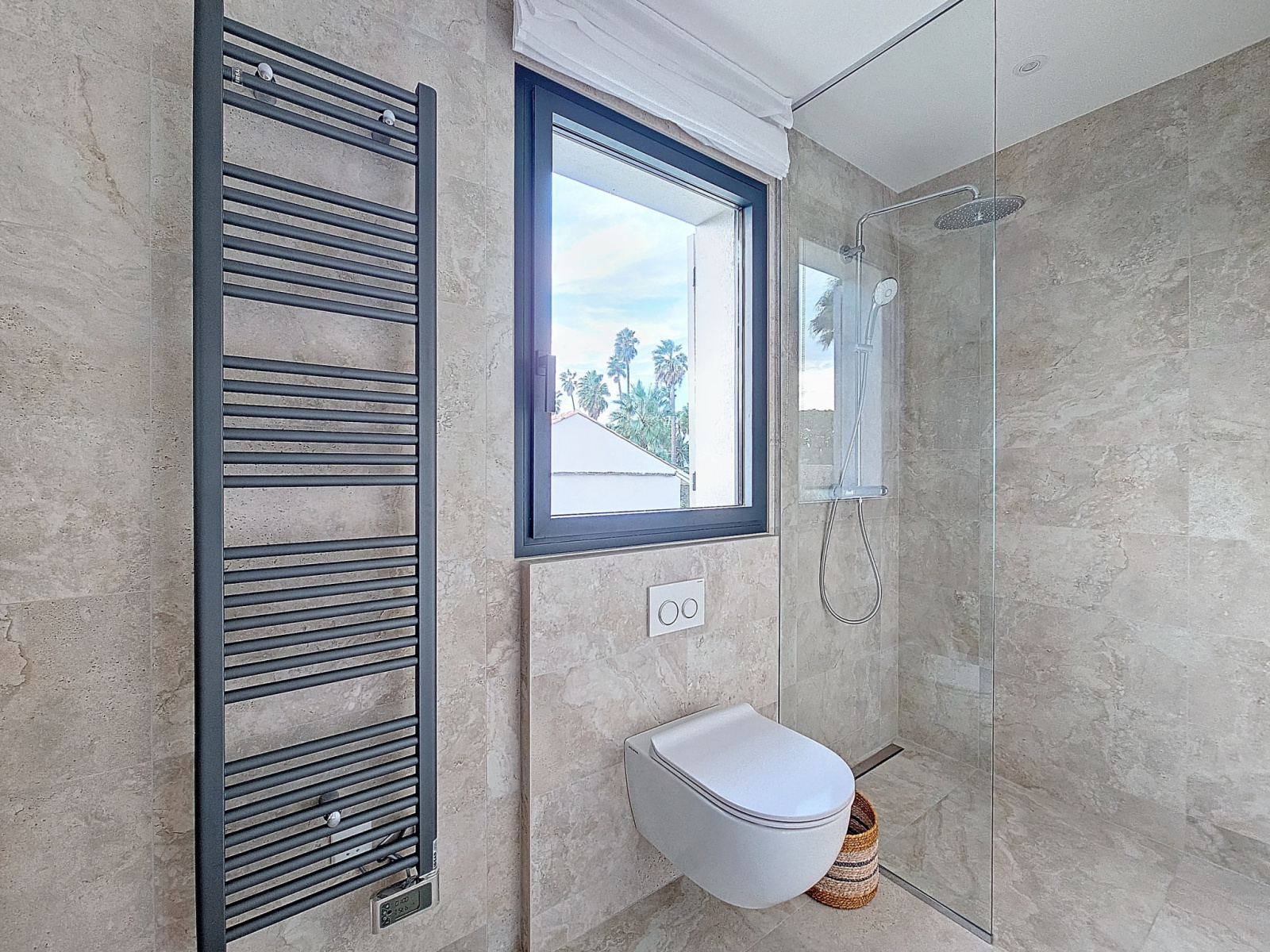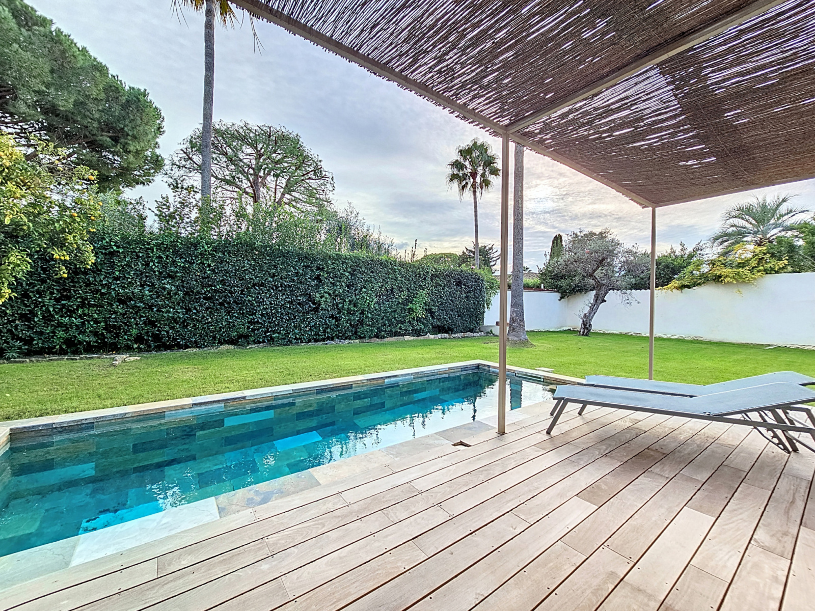 Cap d'Antibes, située sur le versant Ouest, à pied des plages et des commerces, cette villa se situe sur un terrain de 924m². Celle-ci se compose d'une entrée, d'une cuisine ouverte sur la pièce à vivre donnant sur un somptueux jardin avec piscine et arbres fruitiers. De plain-pied, une suite parentale avec dressing, salle de bains et double vasque. A l'étage, 2 autres chambres en suite avec salle de douches et dressing. Vous profiterez d'un bel espace d'environ 30m² en sous-sol aménageable soit en chambres, en salle de jeux ou salle de cinéma, laissez-vous porter par votre imagination. Matériaux de qualité, climatisation gainable, domotique, tout à l'égout. Aucun travaux n'est à prévoir, vous n'aurez qu'à poser vos valises. Pour plus d'informations, n'hésitez pas à contacter PLANET COLLECTION.